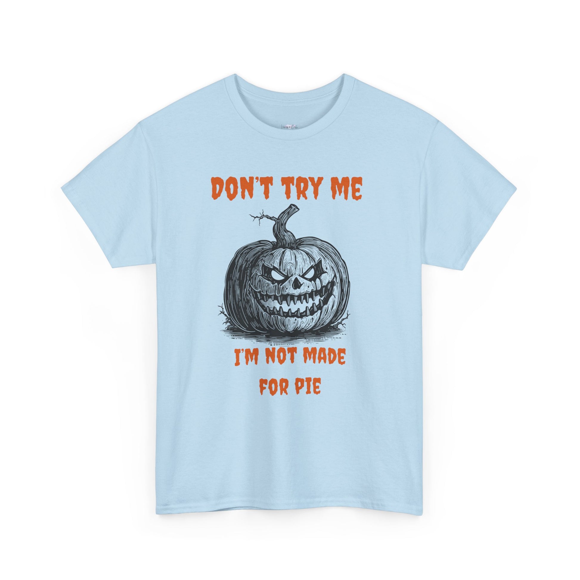 This Halloween-themed T-Shirt is perfect for the fall season, featuring a pumpkin design. It exudes a cozy and festive vibe, making it ideal for Halloween celebrations and autumn enthusiasts. Targeted at adults looking for a comfortable and stylish tee for casual wear during the holiday season.