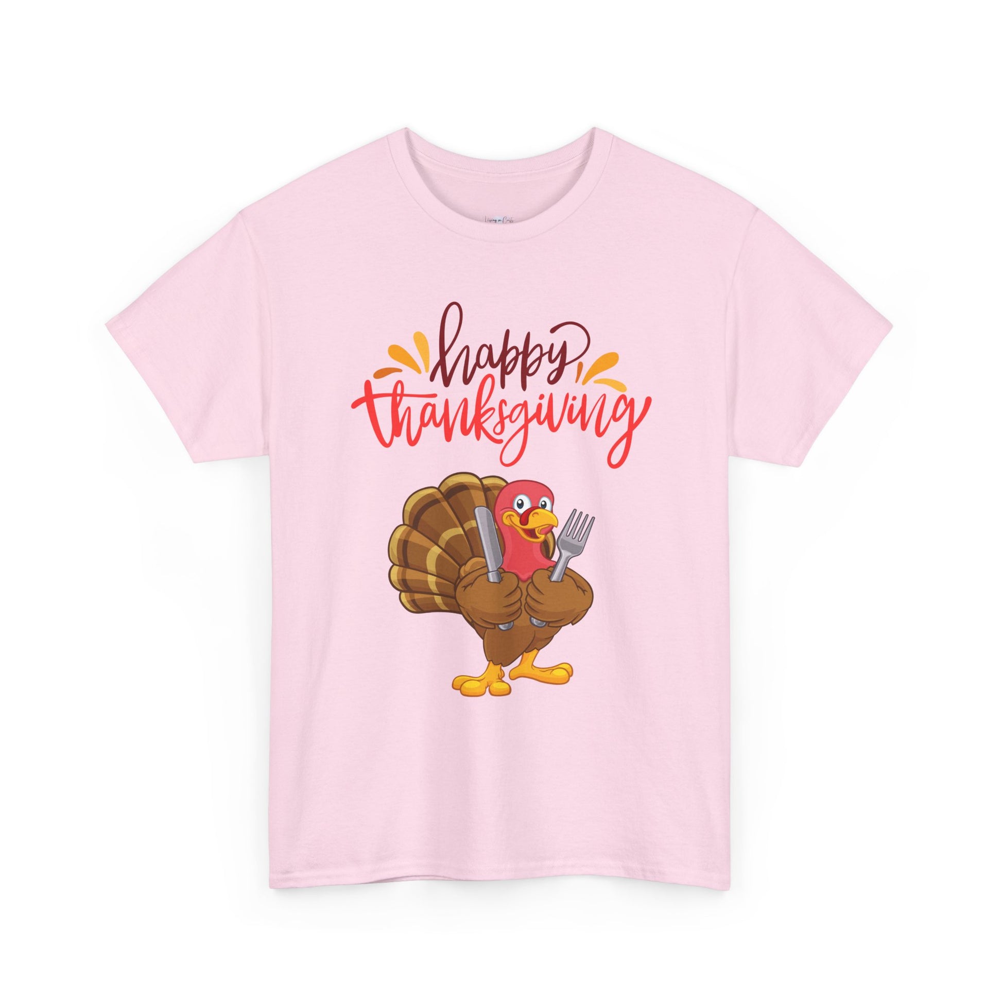 Celebrate the joy of Thanksgiving with this charming Unisex Heavy Cotton Tee. Featuring a delightful turkey graphic alongside the cheerful words 'Happy Thanksgiving', this tee creates a warm, festive atmosphere perfect for gatherings with family and friends. Its classic fit and timeless crew neckline ensure comfort while blending seamlessly into your holiday wardrobe. Ideal for adults eager to spread holiday cheer, this shirt is perfect for Thanksgiving dinners, family photos, or casual get-togethers. Made from high-quality cotton, this tee not only feels good but is also ethically produced, making it a wonderful choice for those who value sustainability and comfort.